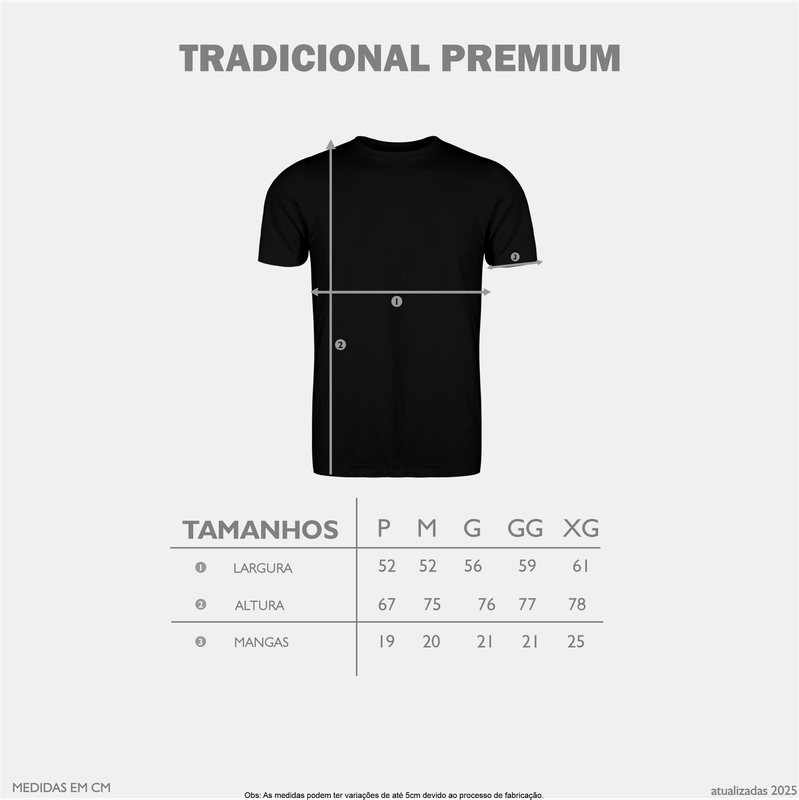 Malha Premium - Estampa DTF. ATENÇÃO: Os prazos de produção podem se estender de acordo com a demanda (até 8 dias úteis). Envio: Código de rastreamento será disponibilizado após a produção. O prazo de entrega varia conforme o método escolhido (PAC ou SEDEX). Importante: Devido ao modelo de produção print on demand, não é possÃvel cancelar pedidos após a confirmação do pagamento no nosso sistema. Trocas: O prazo para solicitação de troca é de até 7 dias corridos após o recebimento do pedido, conforme previsto no Código de Defesa do Consumidor. Antecipe suas compras para garantir a entrega dentro do prazo desejado. Todas as etapas podem ser acompanhadas na área "Minhas Compras".